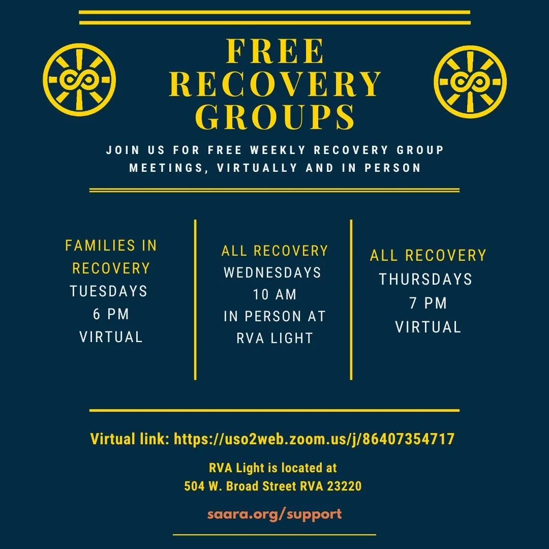 SAARA provides supportive, peer-led recovery groups at a variety of times. These groups focus on addressing a variety of recovery needs—mental, physical, spiritual, and financial—while also targeting behaviors and encouraging change. These peer-led groups are facilitated by trained Peer Recovery Specialists who use their personal recovery experiences to guide and support others. This environment allows participants to share their recovery journeys in a safe, judgment-free space.